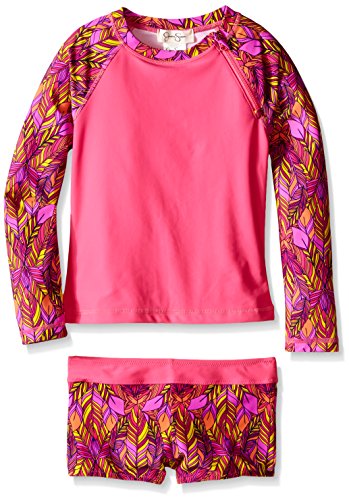 Jessica Simpson Girls Long Sleeve Feather Rash Guard Set