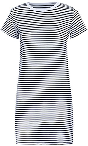 LunaJany LUNAJANY Womens Crew Neck Short Sleeve Casual Striped Dress