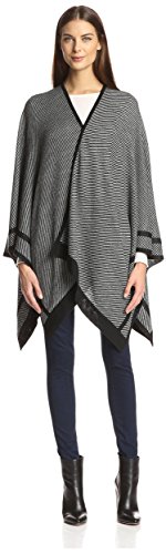 NORTH ELEVEN Womens Herringbone Ruana, Black/Ivory