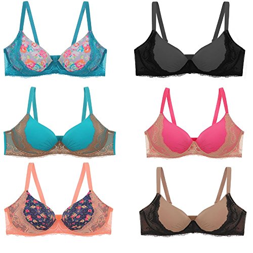 EAG WOMENS PLUS SIZE LACE DETAIL AND FLORAL PRINT BRAS( 6-PACK)