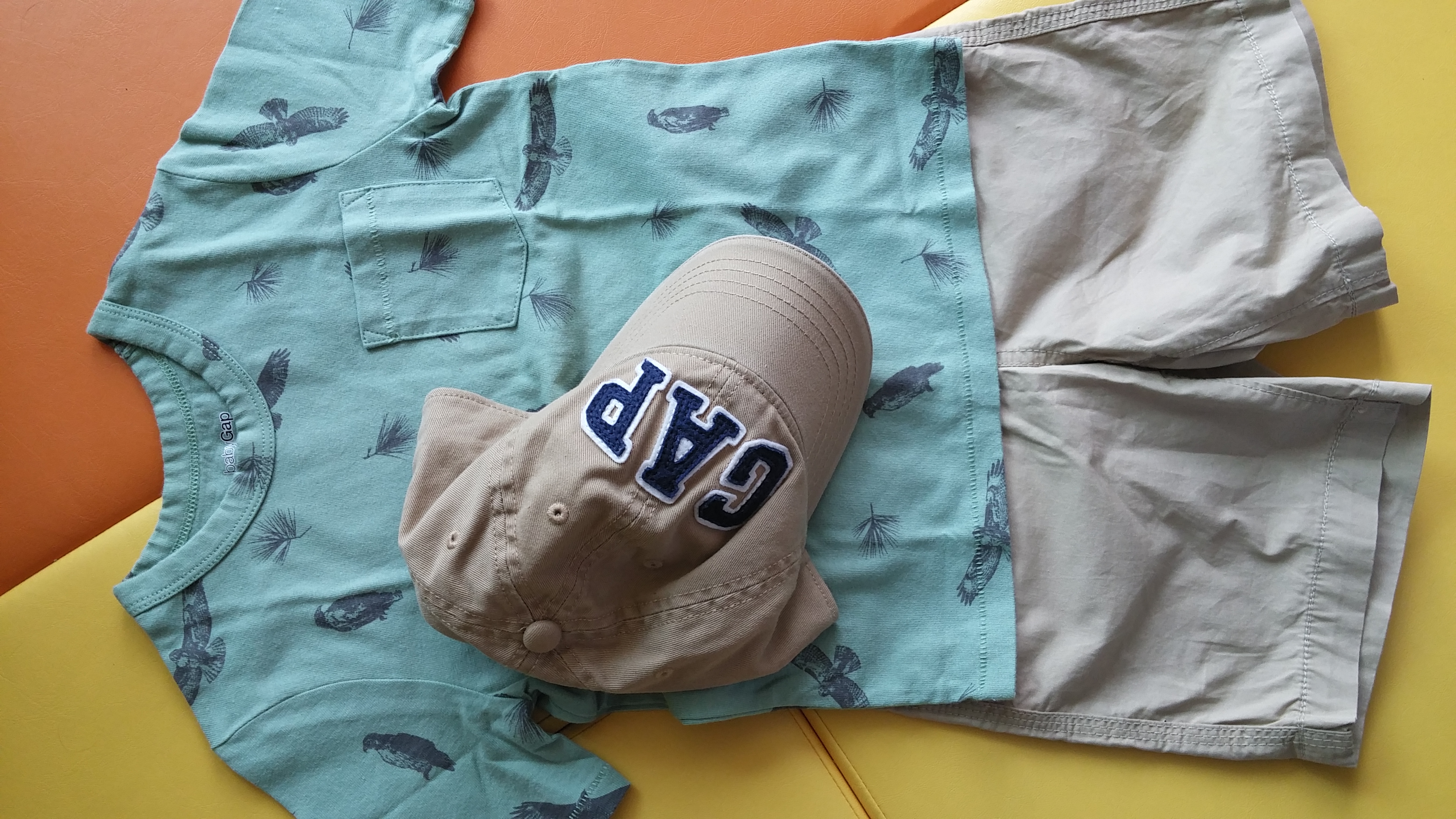 티셔츠가 사진상은 좀 어둡게 나왔지만 톤약간 따운된 그린색이에요. 파스텔 그린으로 보시면 되구요~ 프린트는 그레이색으로 새모양 프린트에요. 은근 분위기 있는 북유럽 스탈이랍니다. 갭 반바지. 모자 와 코디했더니 더 이뻐요^^ 강추~~