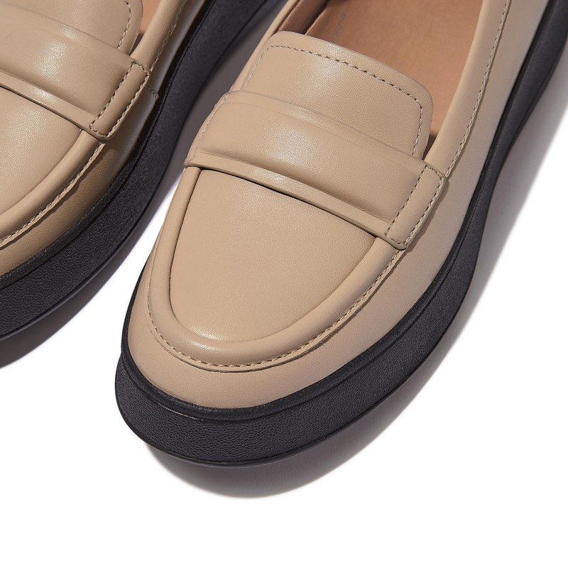 We've raised a fashion staple to new heights. These refined loafers combine beautifully crafted uppers with a superchunky (yet lightweight) sole. Clean. Contemporary. Fashioned in smooth high-quality leather, with sophisticated detail in the form of a simple padded strap, pressed at the edges, and classic moccasin seaming. Here, contrast black soles add to the design edge. Featuring the flatform-version of our Microwobbleboard midsole to deliver ergonomic comfort, non-stop cushioning (and a little extra height). Perfect for work or play. Slick style on a statement sole, every modern woman needs a pair. Fitting note: Please be aware that these loafers have an 'average to slim' width fit, so may feel narrower than other styles on our Microwobbleboard midsole.