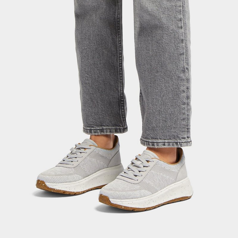 Uplift almost any outfit with our classic flatform sneakers. These refined staples fuse a sporty sneaker aesthetic with the contemporary cool of a chunky (yet lightweight) sole. Fresh. Modern. This version reworked in a soft, light, breathable, one-piece engineered knit (partly recycled from plastic bottle waste). Recreating the paneled look of the original sneaker with monochrome and two-tone areas, and boasting heel/tongue/facing suede accents. Padded throughout, thicker where you need it most on the tongue and collar. On a flatform-version of our triple-density Microwobbleboard midsole delivering unbeatable ergonomics, cloud-like cushioning (and a little extra height). Elevated style. Serious comfort. Scotchgard protected. Two-tone knit in Tiptoe Grey/Urban White. As part of our e01 project to create more sustainable footwear, this version, while not 100% sustainable, features a percentage of recycled/reprocessed/natural materials: Knit upper, laces & antibacterial mesh footbed 100% recycled PET polyester Main lining 85% recycled PET polyester Insole foam 30% reprocessed PU foam Midsole 10% tea stalks Outsole 10% reprocessed white rubber speckles All from suppliers certified by the GRS (Global Recycle Standard) These shoes have been granted the APMA* Seal of Acceptance, for footwear found to promote good foot health *American Podiatric Medical Association