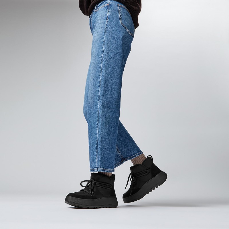 Paying a nod to 90s street style, these fun-and-functional booties boast puffer uppers on a chunky, yet light, sole. Pull on, with flecked tubular laces to adjust the fit.