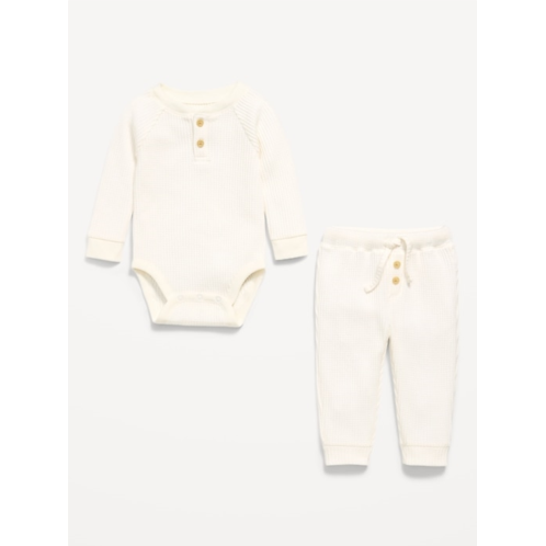 OldNavy Long-Sleeve Thermal-Knit Henley Bodysuit and Pants Set for Baby
