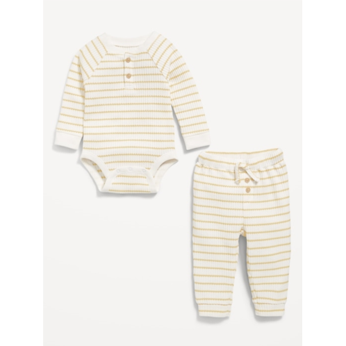 OldNavy Long-Sleeve Thermal-Knit Henley Bodysuit and Pants Set for Baby