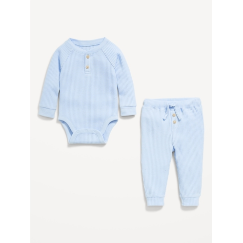 OldNavy Long-Sleeve Thermal-Knit Henley Bodysuit and Pants Set for Baby