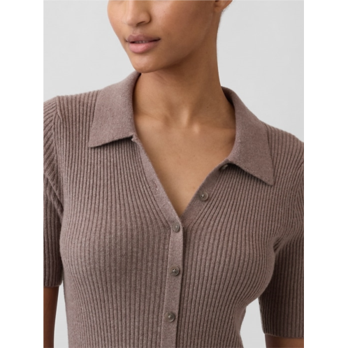 Gap CashSoft Rib Collared Midi Cardigan Dress