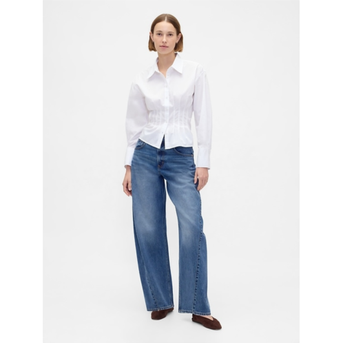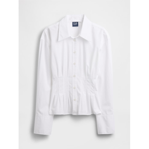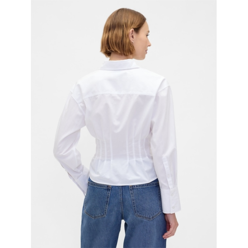 - Smooth poplin cotton fitted button-down shirt. In a slightly cropped length.