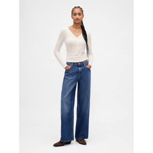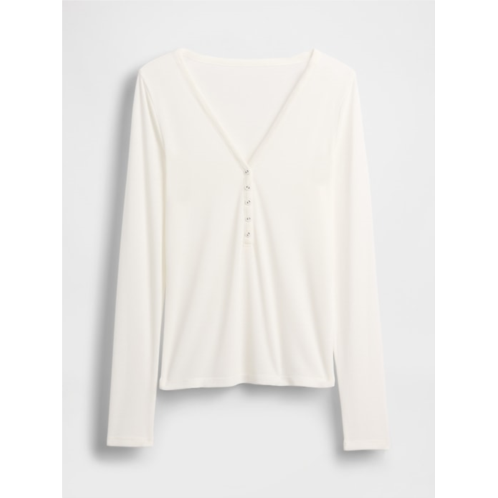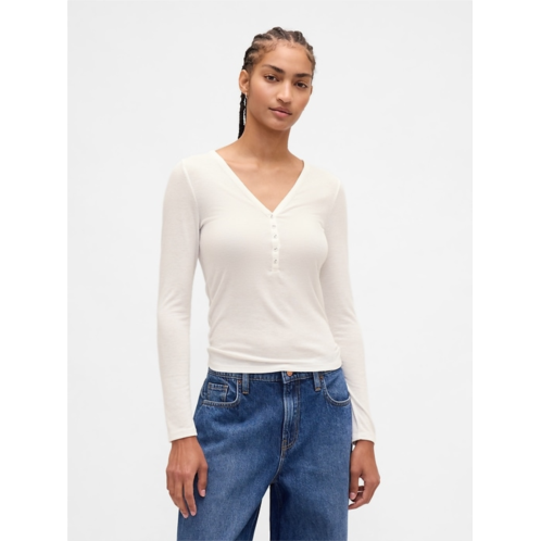 - Soft, sheer, ribbed stretch knit Henley T-shirt. In a slightly cropped length.