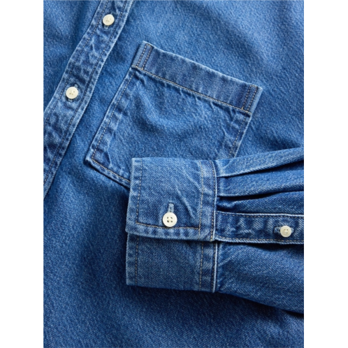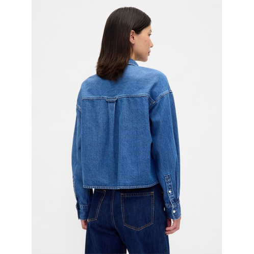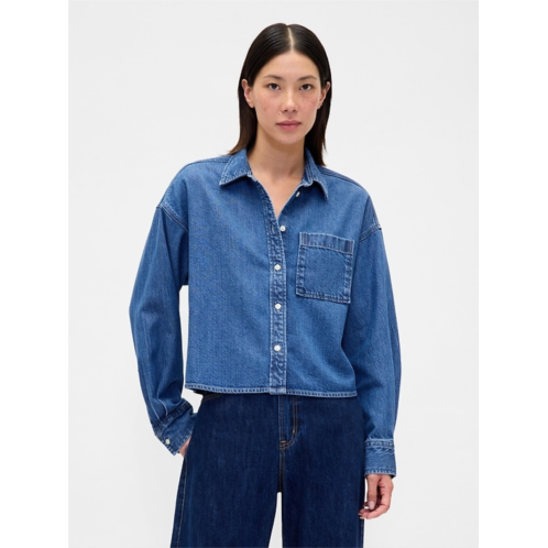 Gap UltraSoft Denim Oversized Straight-Hem Crop Shirt