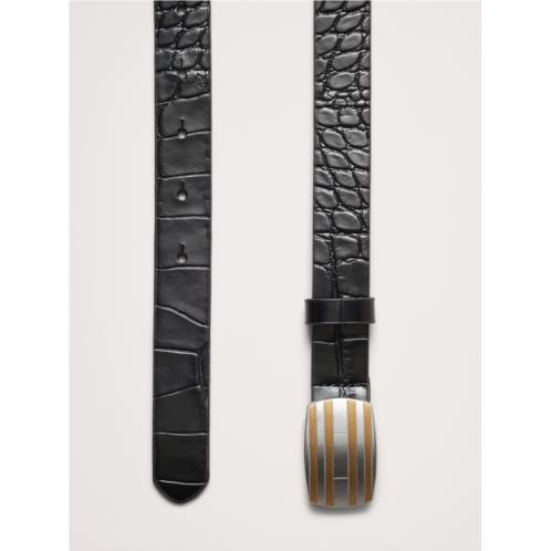 - Like a streamlined take on a Western classic, this crocodile embossed-leather belt has beautifully burnished edges and a minimalist plaque buckle.