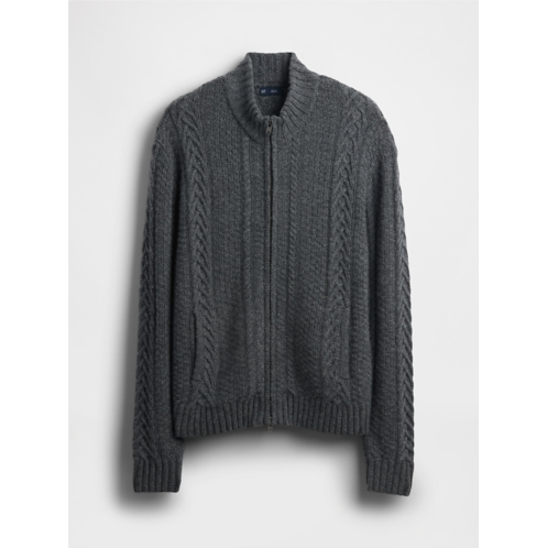 Gap Wool-Blend Cable-Knit Zip Cardigan Sweater