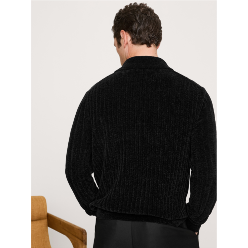 - So soft, so cozy. We love chenille for its ultra-plush feel, seen here in a retro sweater polo with a Johnny collar.