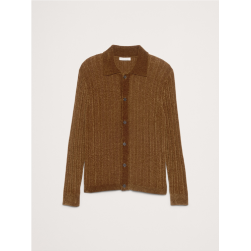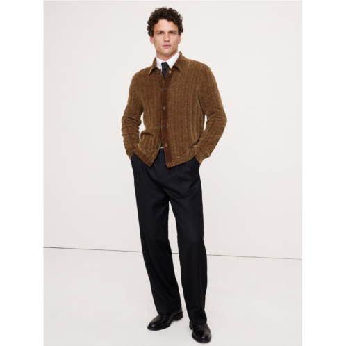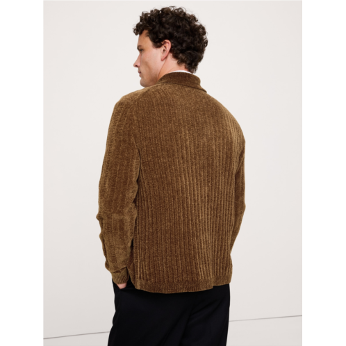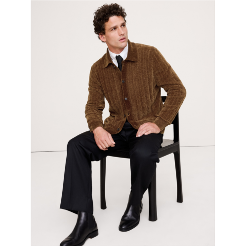 - So soft, so cozy. We love chenille for its ultra-plush feel, seen here in a retro polo cardigan with a ribbed knit texture.