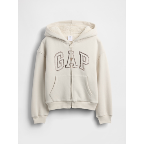Gap Kids Sherpa-Lined Graphic Logo Hoodie