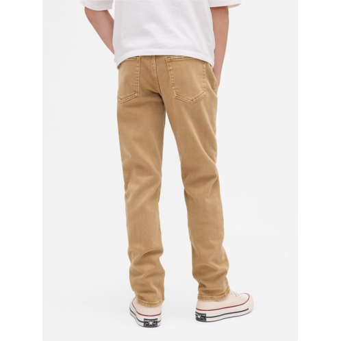 - Button at center (sizes 4-8 have a hook & bar closure beneath faux snap for easy on and off), zip fly.Classic 5-pocket styling.