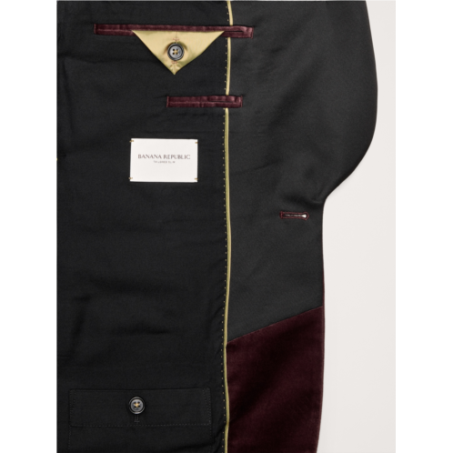 - When the occasion calls for something truly special, reach for this velvet tuxedo jacket. We selected a beautiful cotton velvet, cutting the fabric pile-up to add to its luster. Finally, we added a roped shoulder and a shawl-lapel for a dressed up feel.