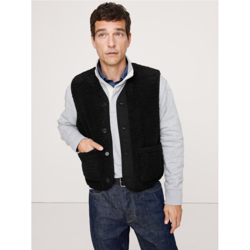 - Cozy, contemporary, cool. We cut this vest in a relaxed silhouette (so it's easy to layer) in our favorite sherpa fabric.