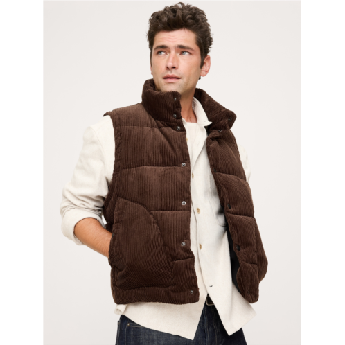 - We fell hard for this soft, cotton corduroywe love the retro feel of its mix of skinny and wide walesso we knew we had to do something special with it. Here, a classic puffer vest to layer through cooler seasons.