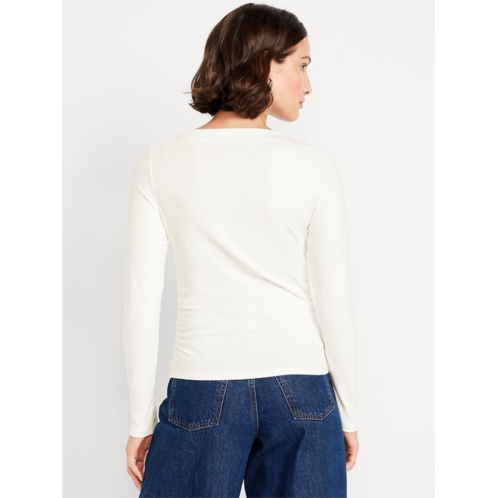 OldNavy Long-Sleeve Slit-Neck Ruched Top