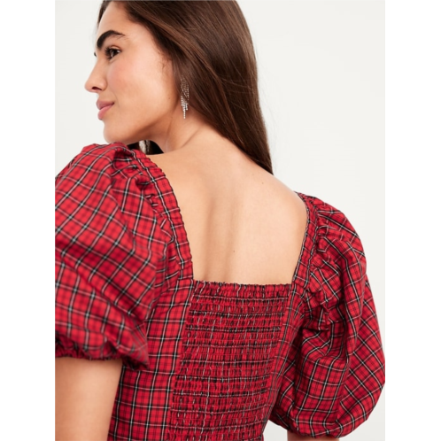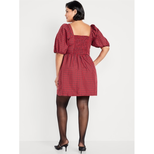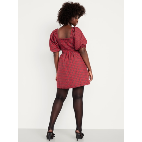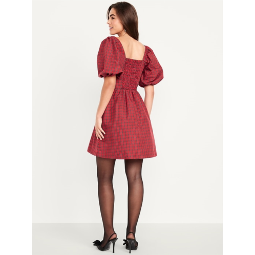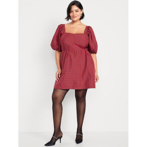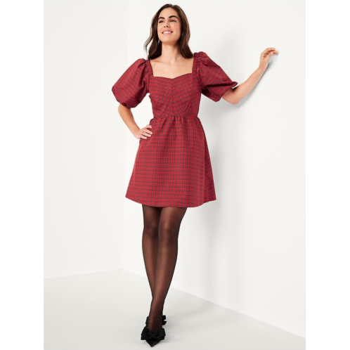 OldNavy Puff-Sleeve Plaid Fit & Flare Taffeta Mini Dress