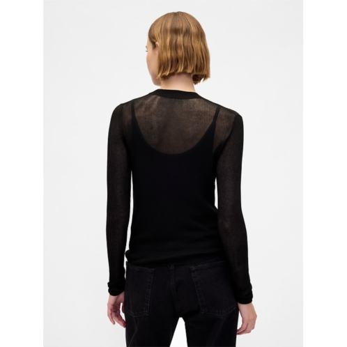 - Sheer, ribbed knit sweater. In a slightly cropped fit.