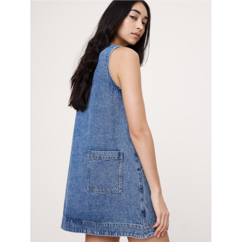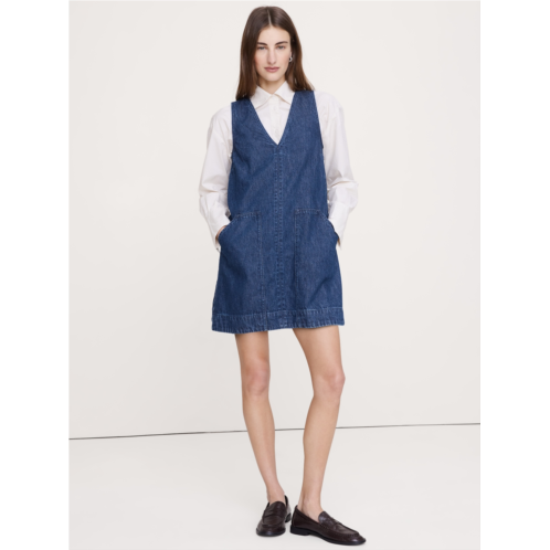 - Our version of the season's pinafore dresses. This sleeveless shift dress is done up in a soft, denim fabric that's just a little heavier than chambray. Style it now on its own with flats or layer over a long-sleeve tee and tights for cooler days.