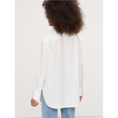 - Cut from our signature silk crepe de chine, this oversized shirt has chest pockets for a utility twist on the classic button-down shirt. Did we mention it's also machine-washable?