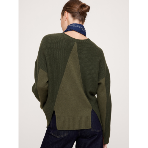 - Deconstructed, reconstructed. We borrowed two vintage stitch types and mixed them in a tonal combination of colors to create a paneled effect. To make it luxe, we selected our signature midweight cashmere yarn so it's ideal in cooler seasons.