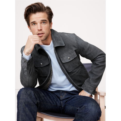 - A luxurious take on a utilitarian staple, this suede jacket borrows its silhouette from classic trucker jean jackets. We kept the pocketing, snap buttons, and top-stitch detailing of the original, and rendered it in premium suede, made in one of the world’s most renowned ateliers. Plus, since it's suede, it will only get better with time, developing a rich and unique patina.