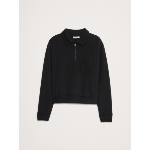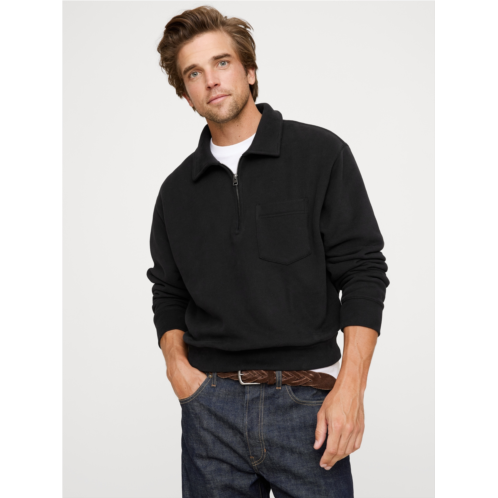 - Team Cozy. We reached for one of our softest sweatshirt fleeces here, opting for a boxy, relaxed fit and zip-placket polo collar for a vintage vibe.