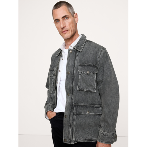 - An ode to classic four-pocket field jackets from the early '80s, this iteration is crafted from beautiful Italian denim with an added wash for softness and lived-in color.