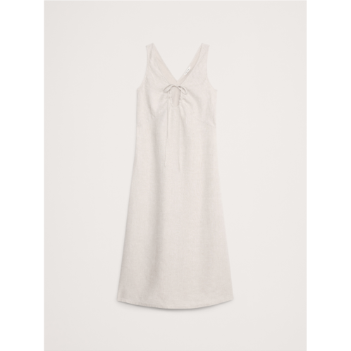 - A timeless, A-line linen dress gets an update with a drawstring keyhole detail at the neckline. Tie it to close the keyhole or tie behind the neck like a halter, in 100% certified-European linen.