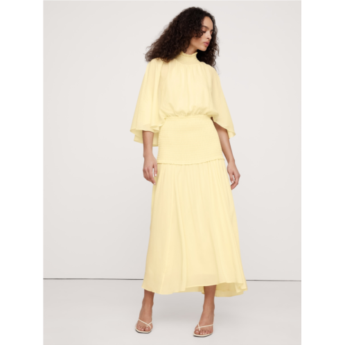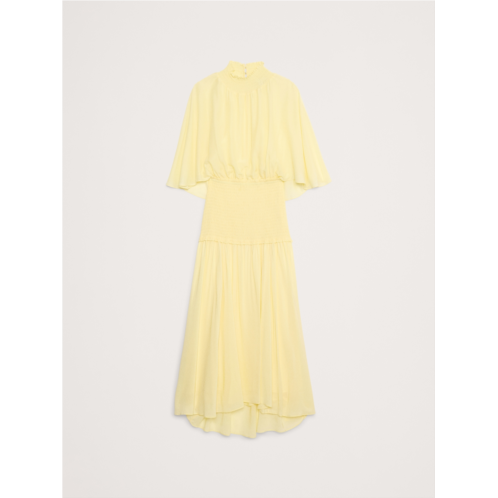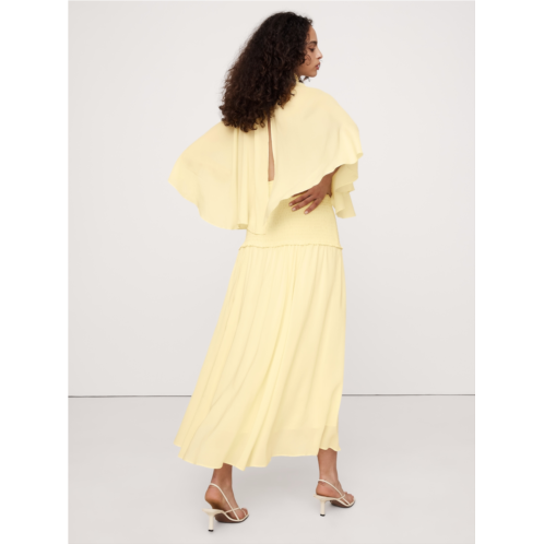 - Going somewhere? This maxi dress is artfully draped, with a smocked waist, fluttering cape sleeves, a full, swingy skirt, and an open back. Another thing we love? It’s cut from a viscose crepe that feels light-as-chiffon with a subtle stretch.
