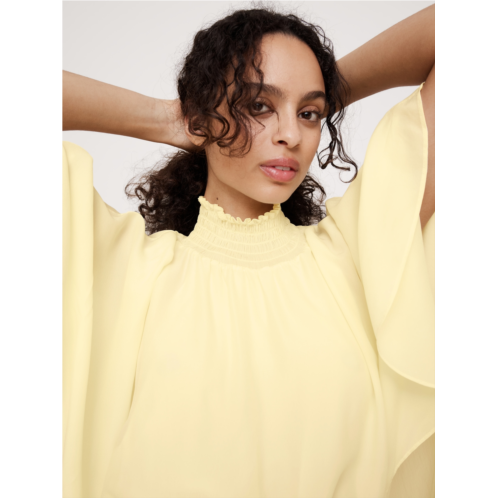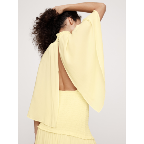 - Going somewhere? This maxi dress is artfully draped, with a smocked waist, fluttering cape sleeves, a full, swingy skirt, and an open back. Another thing we love? It’s cut from a viscose crepe that feels light-as-chiffon with a subtle stretch.