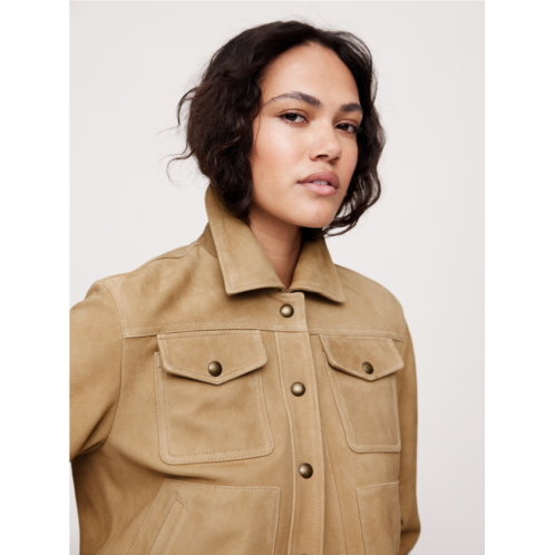 - A luxurious take on a utilitarian staple, this suede jacket borrows its silhouette from classic trucker jean jackets. We kept the pocketing, snap buttons, and top-stitch detailing of the original, and rendered it in premium suede, made in one of the world’s most renowned ateliers. Plus, since it's suede, it will only get better with time, developing a rich and unique patina.