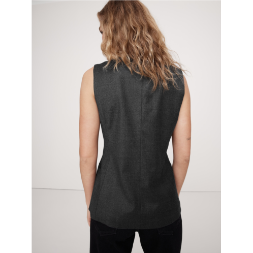 - We styled this tailored vest in a longer length with a lapel-free neckline, leaving you to style it layered as a vest or on its own as a top. Here, we reached for an all-season wool flannel fabric with a touch of stretch for comfort.
