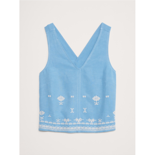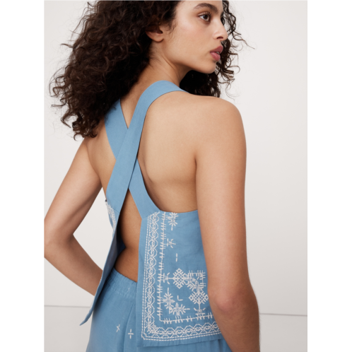 Bananarepublic Embroidered Tencel-Linen Cross-Back Tank