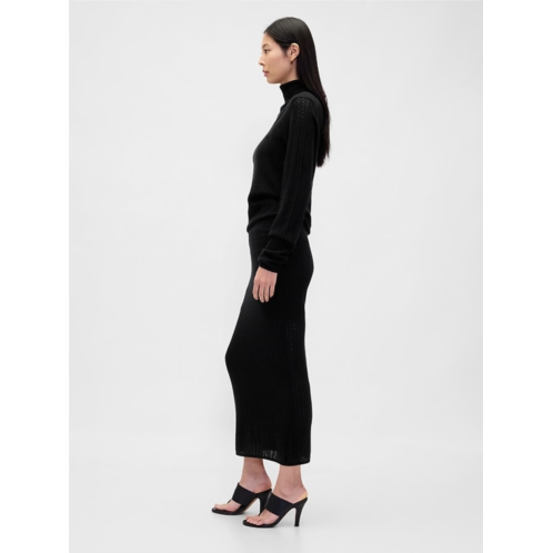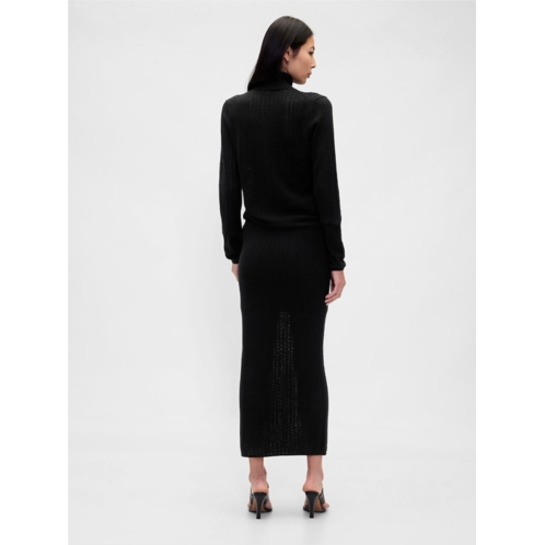 - Soft nylon-wool blend, pointelle knit maxi skirt.