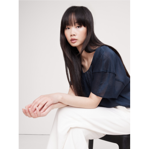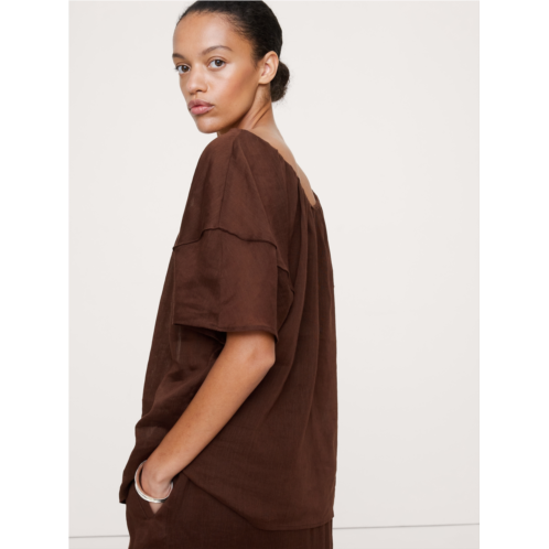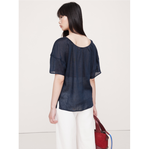 Bananarepublic Linen-Viscose Puff-Sleeve Top