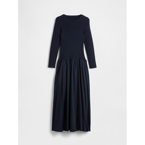 - Soft, ribbed sweater knit cotton top and smooth sateen skirt mixed media maxi dress.
