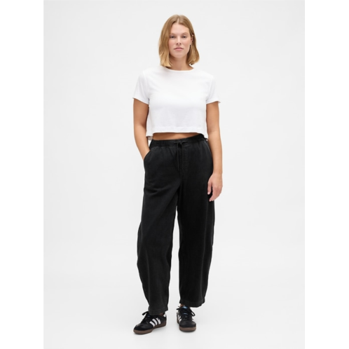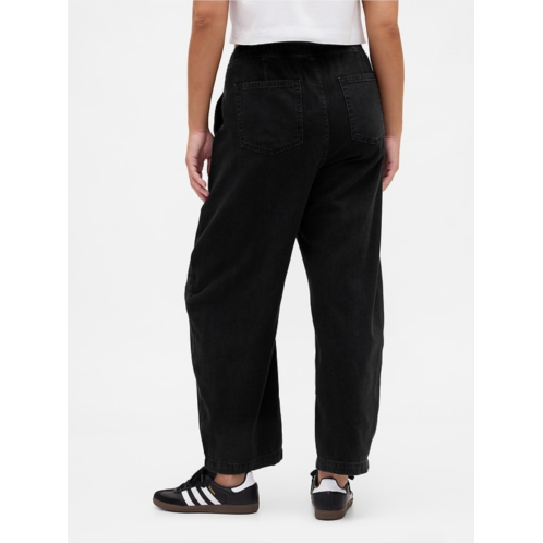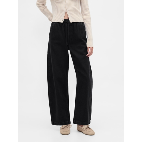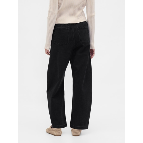 -Look:A pull-on barrel jean in a black wash.