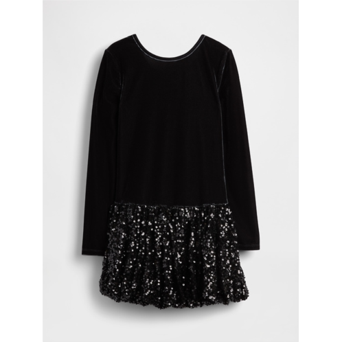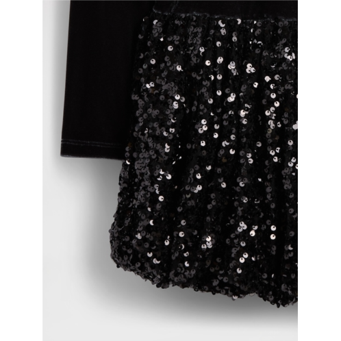 - Soft stretch velour top and cotton-lined mesh bubble skirt mixed media dress.