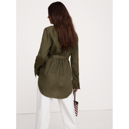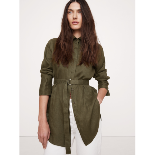 - It's these easy shirts we're loving this summer. This one is tunic length with an adjustable slider belt to define the waist, in 100% certified-European linen.