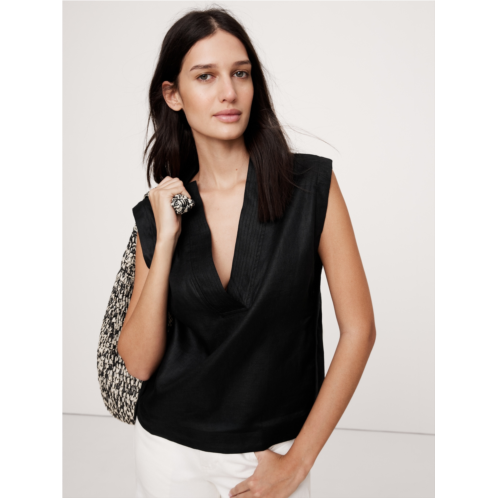 - Made from luxurious linen, we cut this v-neck in an at-ease fit. Style with linen shorts and flat sandals, or dress it up with a linen midi skirt and statement jewelry.