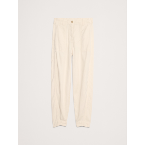 - Our take on the season's barrel-leg styles, we kept things leaning rugged-utility with topstitch detailing while this ultra-soft fabric made with TENCEL, cotton, and flax keeps things feeling dressed up.