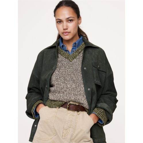 - We modeled this classic v-neck sweater after a vintage one we found in our archives. We knitted it in our chunky cotton yarn, borrowing the high v-neckline from the original and opting for an oversized silhouette to make it modern.
