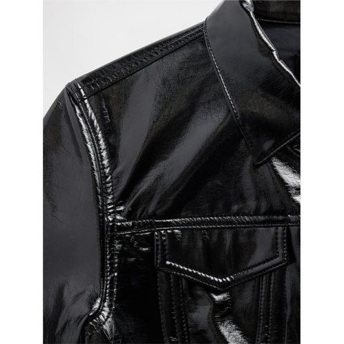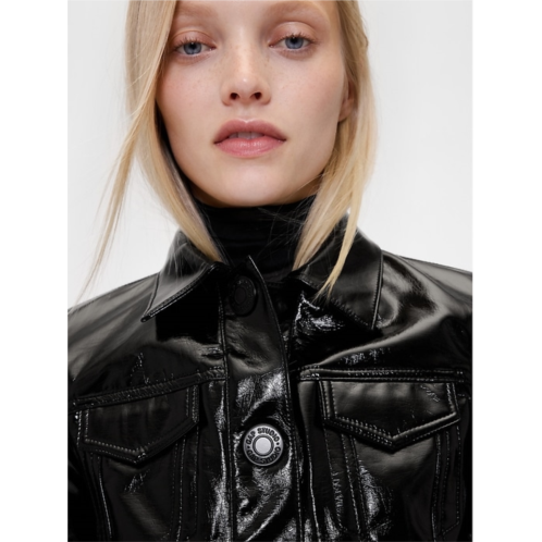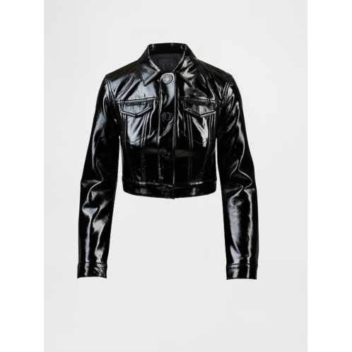 - Distressed vegan patent leather jacket. In a cropped fit.