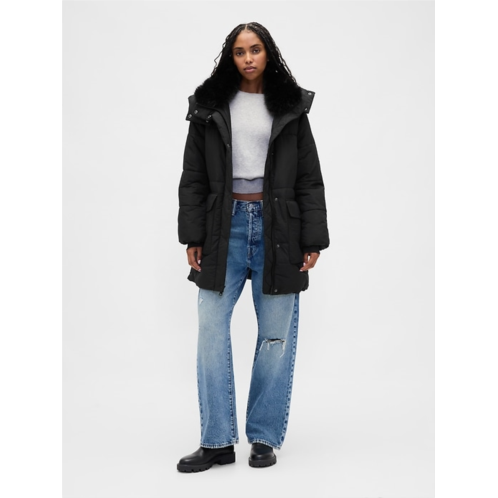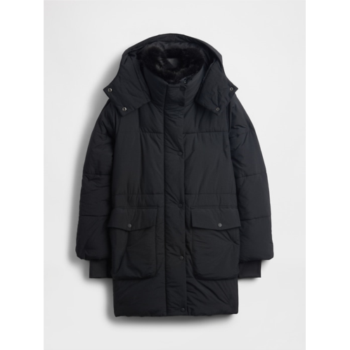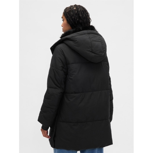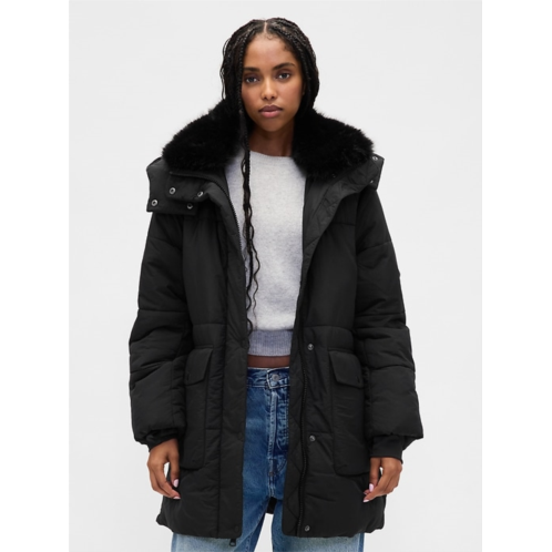 Gap Faux Fur-Trim Midi Puffer Jacket